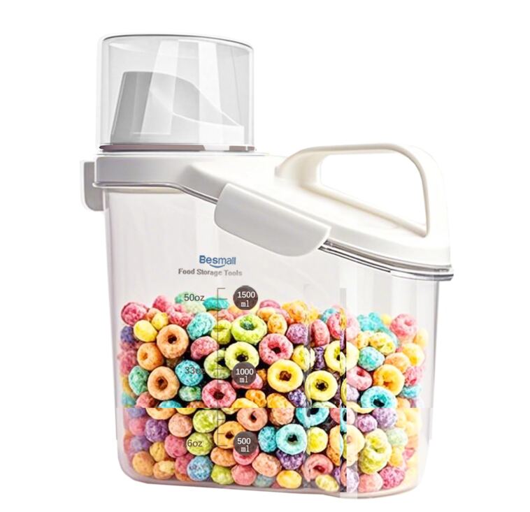 16,92€ | Besmall Contenitore Ermetico Cereali con Beccuccio Dispenser Contenitori di Plastica per Alimenti Cereali Cornflakes Zucchero Farina Contenitori Cucina Organizer (Bianco 1500ml)