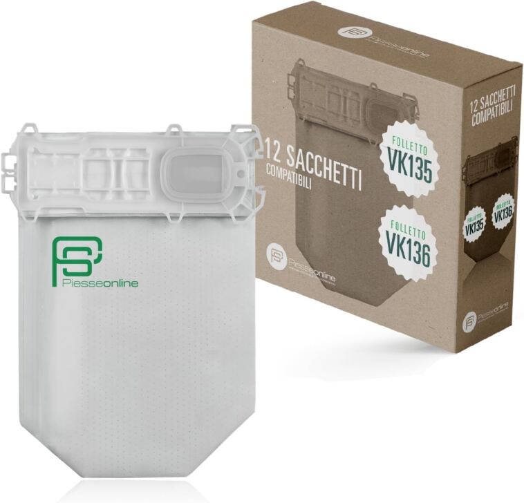 17,00€ | 18 Sacchetti Folletto VK 135/136, Microfibra 5 Strati – Filtraggio Potenziato e Neutralizza Odori – Sacchi Folletto Compatibili VK135 E VK 136, Resistentissimi con Carboni Attivi
