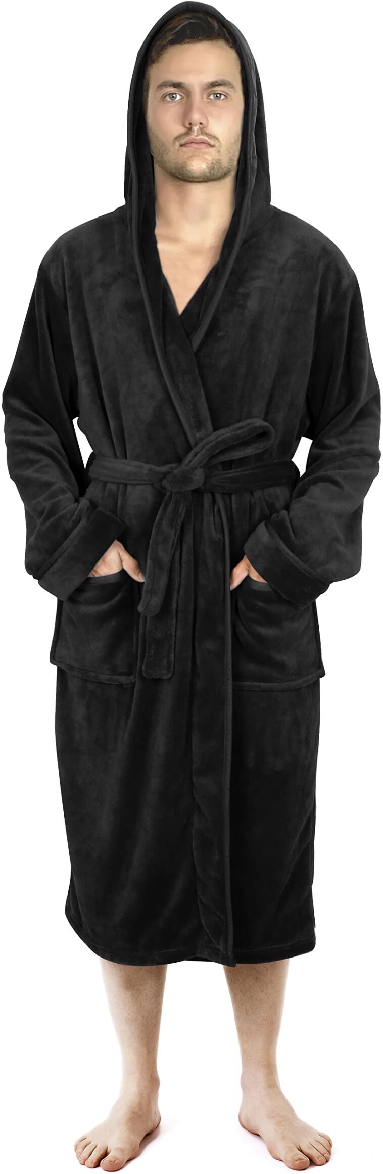 14,99€ | NY Threads Vestaglia da uomo con cappuccio, morbida e soffice per il sonno e il relax, Nero, Grande
