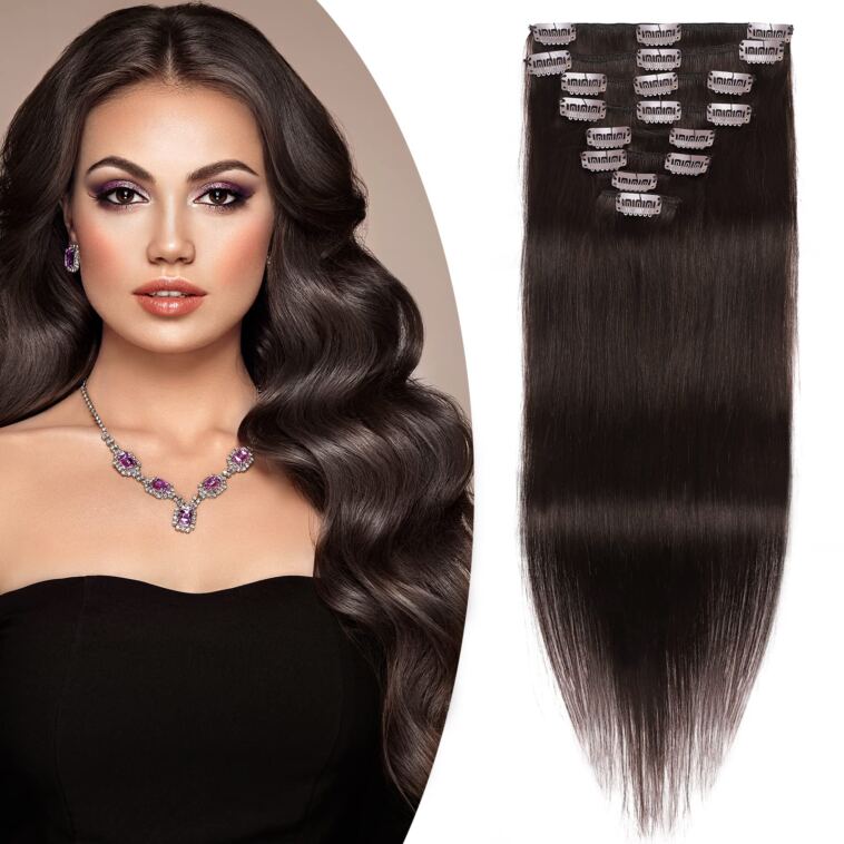 41,70€ | SEGO Extension Clip Capelli Veri Volumizzante 25cm – 100% Remy Human Hair Lisci Naturali 8 Fasce da Set Pesa 110g #2 Marrone Scuro