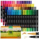 19,49€ | Eglyenlky 72 Penne a doppia punta, marcatori da colorare adulti con punta fine e spazzola per bambino Artista adulto Disegno Journaling Lettering Calligraphy