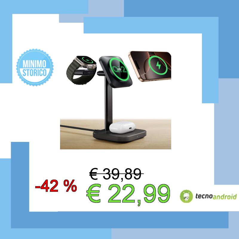 👀 ESR Stazione di ricarica wireless Qi2 3-in-1, Caricatore wireless per Apple Watch